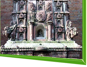 The temple of Mahabouddha is a masterpiece of terra-cotta. Like the Krishna Mandir, it reveals an artistic tradition which evolved outside of Nepal and shows how native Nepalese craftsmen have been able to do justice to an unfamiliar art form. This temple was built by Abhaya Raj, a priest of Patan and is sometimes referred to as the temple of a million Buddhas because every single brick bears a small image of Buddha. There is an astonishing total of nine thousand bricks. It was levelled to the ground in the great earthquake of 1933 but was rebuilt exactly to the original specifications, proving that the templecraft is still one of the living arts of Nepal.