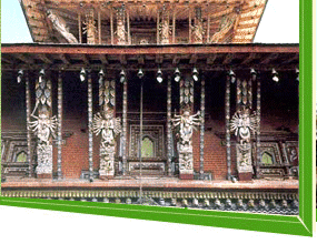 On the struts of the two-tiered Changu Narayan Temple, are the ten incarnations in which Narayan destroyed evil-doers. A sixth-century stone statue shows the cosmic form of Vishnu, while another statue recalls his dwarf incarnation when he crushed the evil king Bali. Vishnu as Narsingha disemboweling a demon is particularly stunning. The western bronze doors sparkle in the evening sunlight, dragons decorate the bells, and handsome devas stare from the walls. Garuda, half man and half bird, is the steed of Vishnu, and his life-sized statue kneels before the temple. The favourite of many tourists is the statue of Vishnu sitting astride his steed.